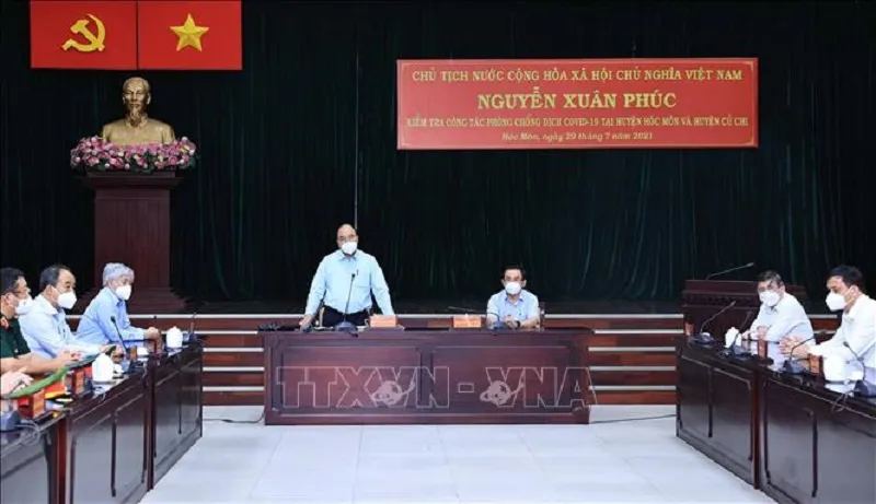 Phát biểu tại buổi làm việc, Chủ tịch nước Nguyễn Xuân Phúc đánh giá cao, biểu dương sự cố gắng của Đảng bộ, chính quyền và nhân dân TP.HCM, đặc biệt là hai huyện Hóc Môn và Củ Chi trong phòng chống dịch COVID-19 trong suốt thời gian qua.