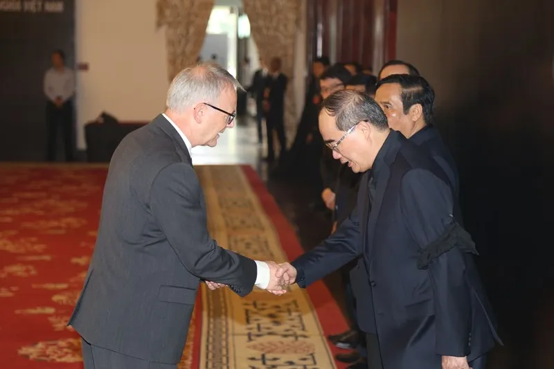 Tổng lãnh sự quán Đức chia buồn với Bí thư Thành ủy TP.HCM Nguyễn Thiện Nhân. Ảnh: Hoàng Giang