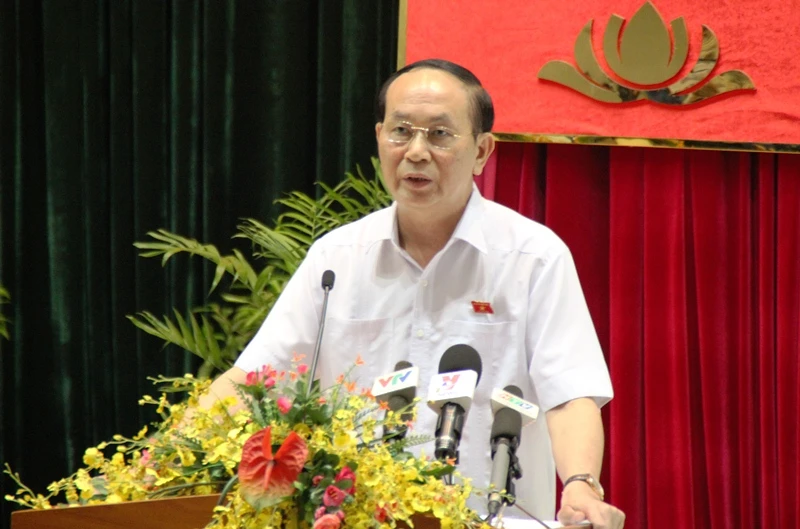 Chủ tịch nước Trần Đại Quang nói tại buổi tiếp xúc cử tri TP.HCM chiều 13-10. Ảnh: TÁ LÂM