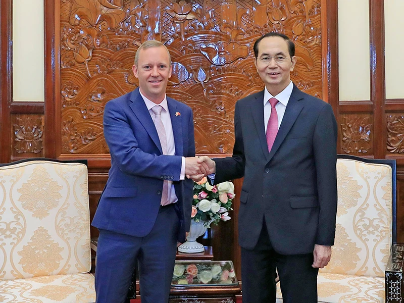 Chủ tịch nước Trần Đại Quang tiếp Đại sứ Liên hiệp Vương quốc Anh và Bắc Ireland Gareth Ward. Ảnh: TTXVN