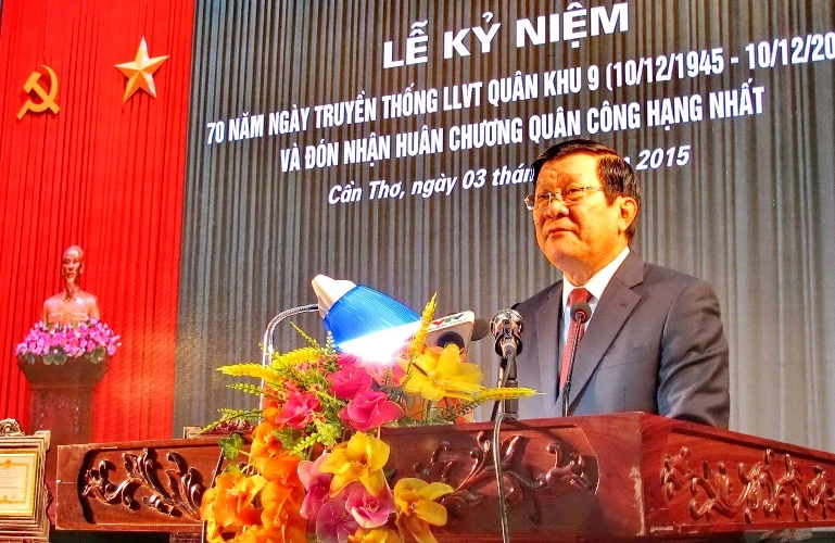 Phát biểu tại buổi lễ, Chủ tịch nước Trương Tấn Sang biểu dương thành tích của LLVT Quân khu 9 đã viết nên truyền thống “Quân dân đoàn kết, kiên cường bám trụ, tự lực tự cường, anh dũng chiến đấu”.