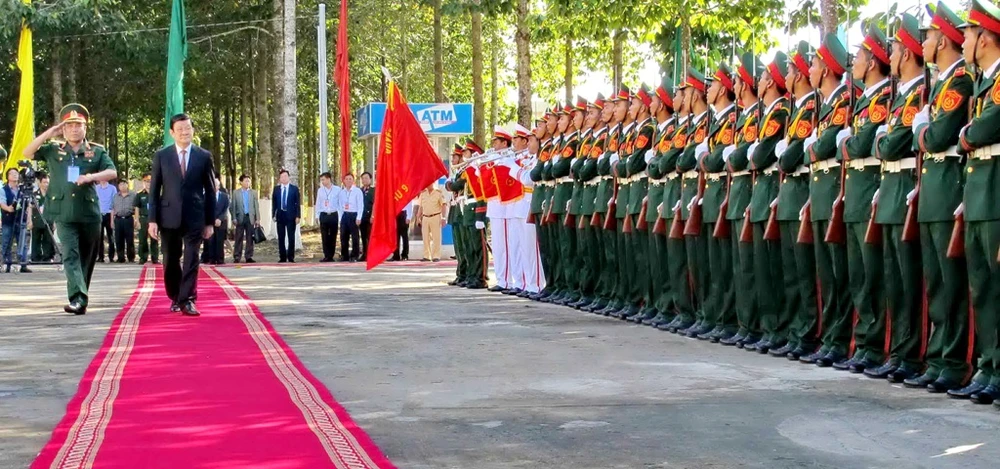 Chủ tịch nước nhấn mạnh trước tình hình quốc tế và khu vực có nhiều biến động trong thời gian tới, nhiệm vụ của quân đội nói chung và LLVT Quân khu 9 hết sức nặng nề. LLVT Quân khu 9 cần tập trung xây dựng tổ chức Đảng vững mạnh, giáo dục cán bộ, chiến sĩ có bản lĩnh chính trị kiên định, vững vàng, trung thành với Đảng, Tổ quốc và nhân dân… tăng cường phối hợp quân đội và công an bảo vệ an ninh quốc gia, hiệp đồng với các lực lượng vũ trang bảo vệ vững chắc chủ quyền lãnh thổ biên giới, biển đảo của Tổ quốc; đồng thời xây dựng tốt mối quan hệ với nước bạn Campuchia, xây dựng biên giới Việt Nam - Campuchia hòa bình, hợp tác và phát triển.