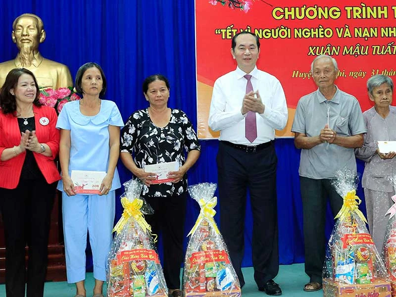Chiều 31-1, tại huyện Củ Chi (TP.HCM), Chủ tịch nước Trần Đại Quang đã tham dự chương trình “Tết vì người nghèo và nạn nhân chất độc da cam”, tặng quà cho 100 gia đình chính sách, hộ nghèo của huyện.