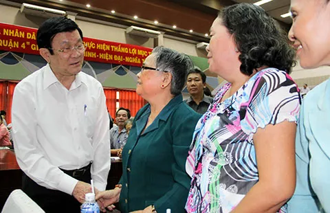 Chủ tịch nước Trương Tấn Sang đang trao đổi với cử tri quận 4 chiều 2-12. Ảnh: NGUYỄN HOÀNG
