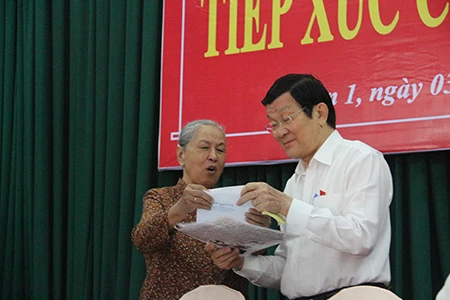 Chủ tịch nước Trương Tấn Sang tiếp xúc với cử tri quận 1. Ảnh: TÁ LÂM