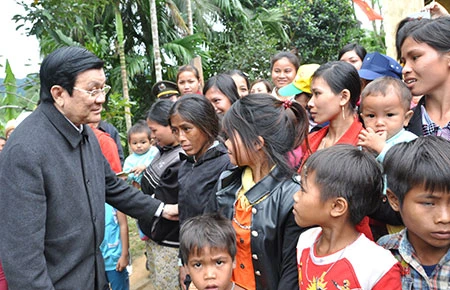 Chủ tịch nước Trương Tấn Sang thăm hỏi người dân Bình Định. Ảnh: TL