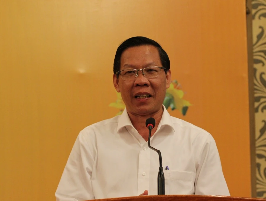 Chủ tịch UBND TP.HCM Phan Văn Mãi phát biểu tại buổi họp mặt. Ảnh: TÁ LÂM