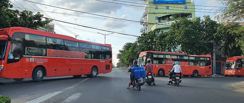 Đoàn xe Phương Trang xuất phát tại TP Tuy Hòa vào TP.HCM đón công dân Phú Yên. Ảnh: TẤN LỘC