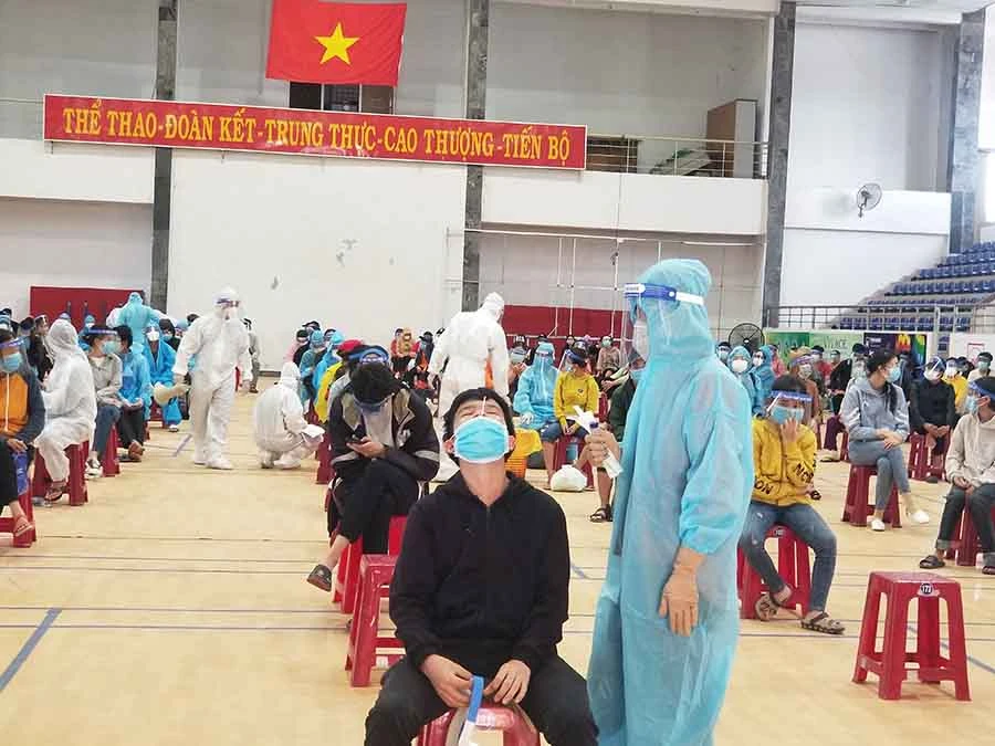 Nhân viên tế lấy mẫu xét nghiệm người dân trước khi về tực cách ly tại nhà 14 ngày hoặc đưa đi ách ly tập trung. Ảnh: MÃ PHONG