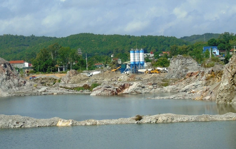 Trạm trộn bê tông lụi hoạt động tại khu vực mỏ đá (đã bị UBND tỉnh Nghệ An đóng cửa) chưa hoàn thổ trả lại môi trường.
