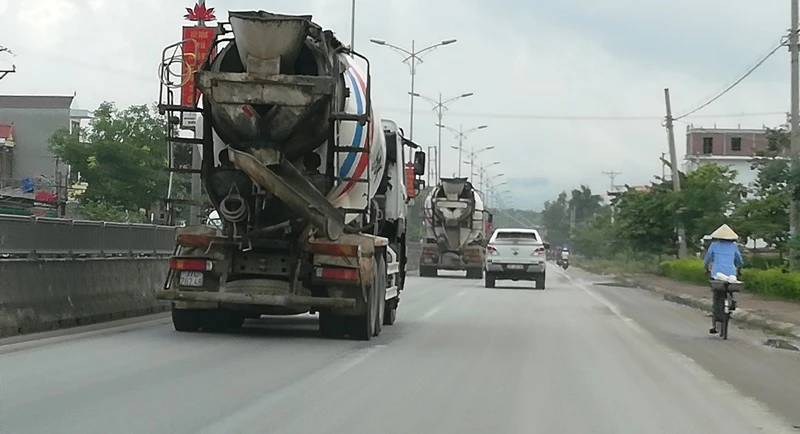 Bê tông thương phẩm lụi chở đến các công trình ở thị xã Hoàng Mai (Nghệ An).