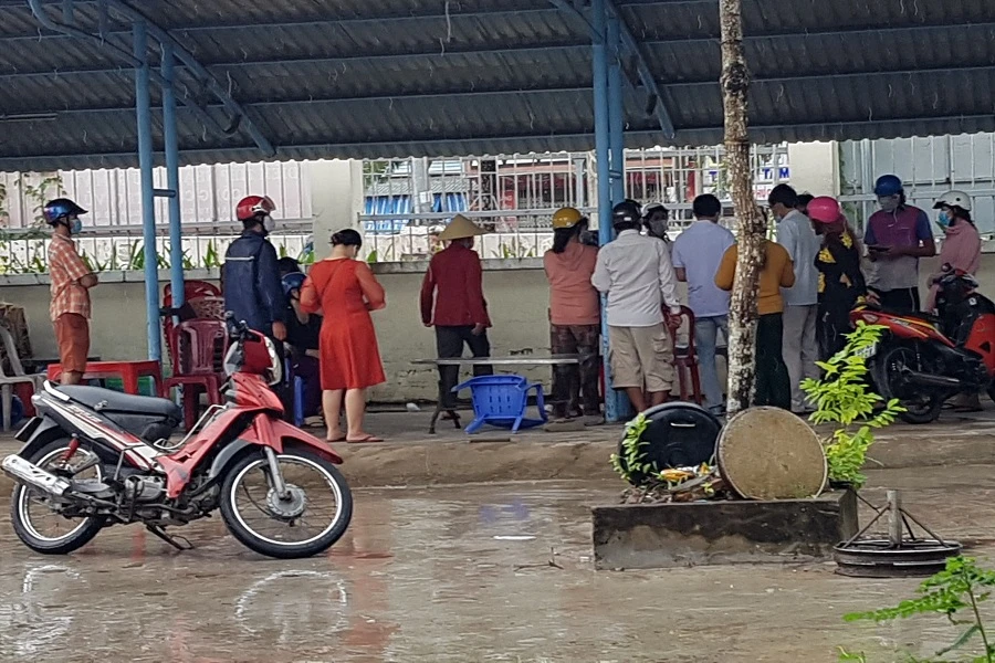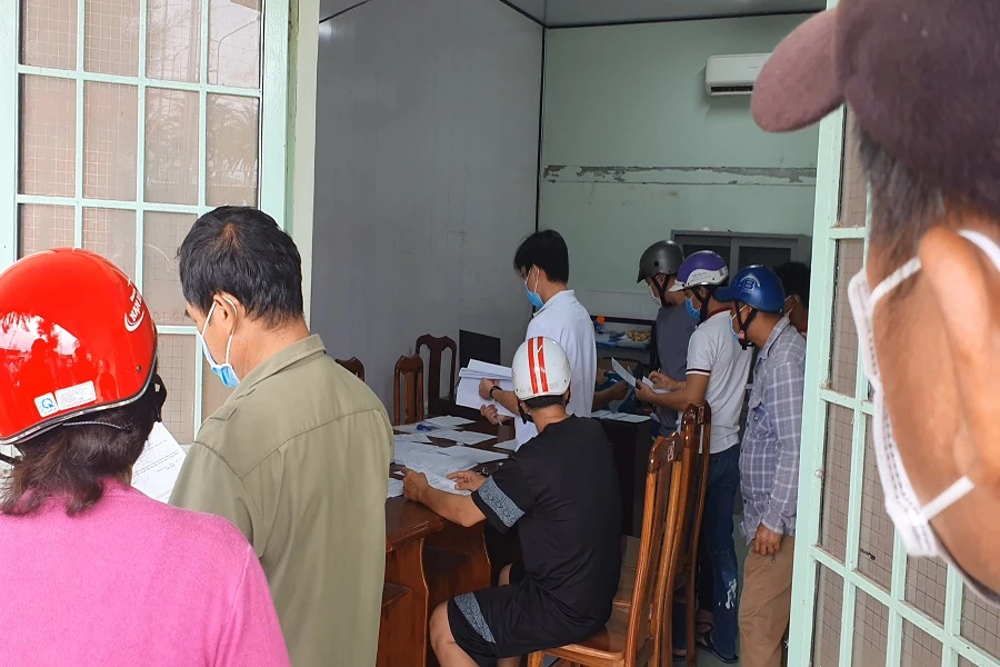Cảnh người dân đến UBND phường 8 xin giấy đi đường sáng 21-7-2021. Ảnh: TRẦN VŨ