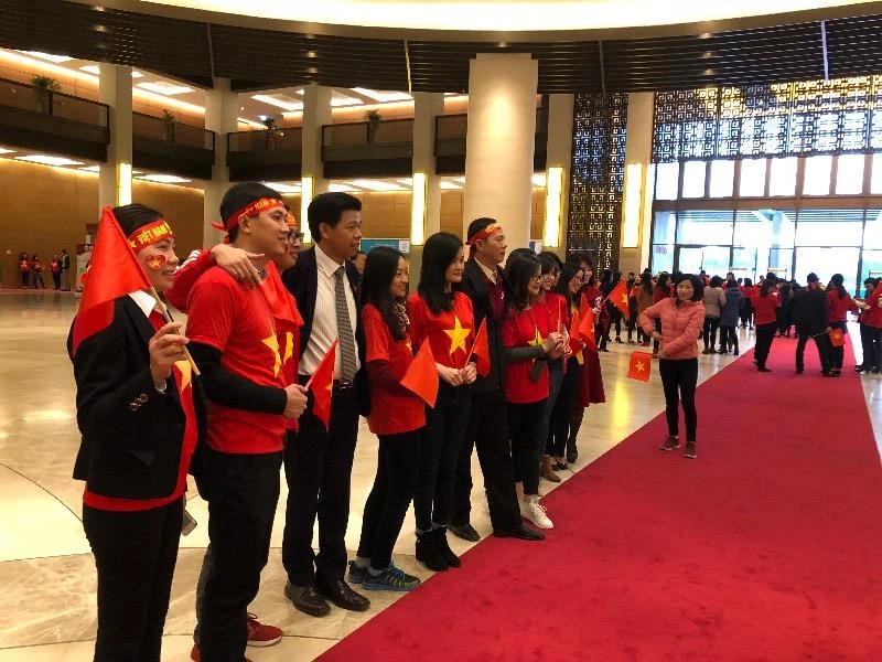 Cán bộ, nhân viên công tác tại nhà Quốc hội chuẩn bị đón đội tuyển U-23 Việt Nam