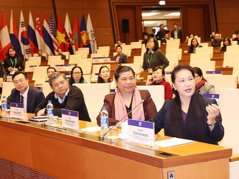 Chủ tịch Quốc hội Nguyễn Thị Kim Ngân kiểm tra công tác chuẩn bị cho hội nghị thường niên lần thứ 26 Diễn dàn Nghị viện châu Á - Thái Bình Dương (APPF - 26). Ảnh: TTXVN