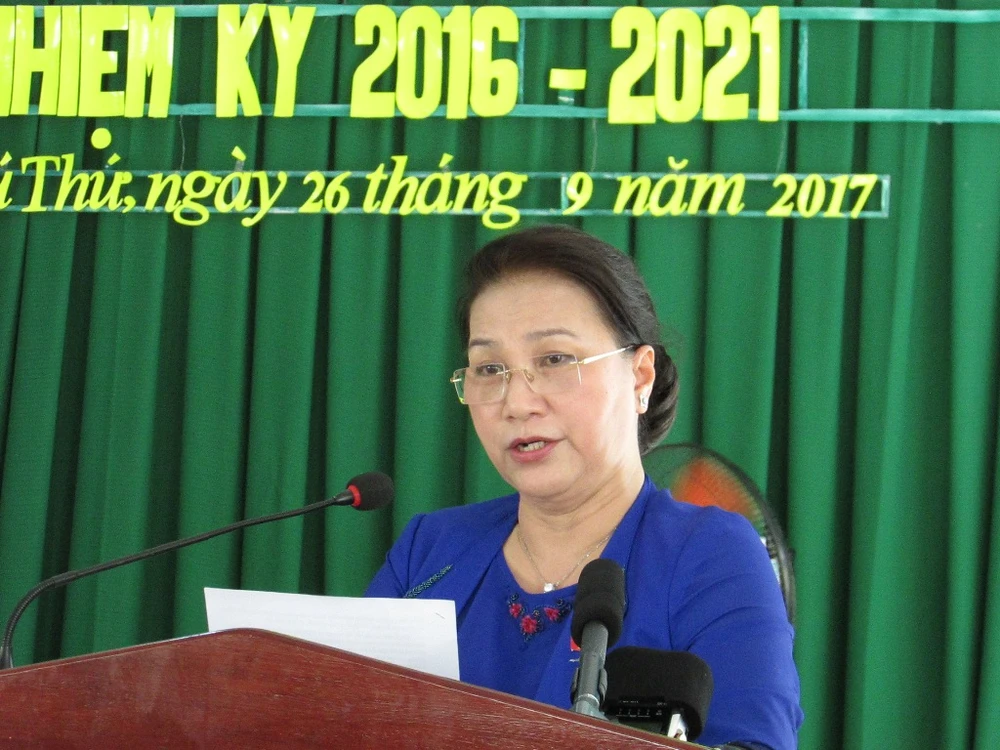 Chủ tịch QH Nguyễn Thị Kim Ngân trả lời cử tri tại buổi tiếp xúc ngày 26-9. Ảnh: NN