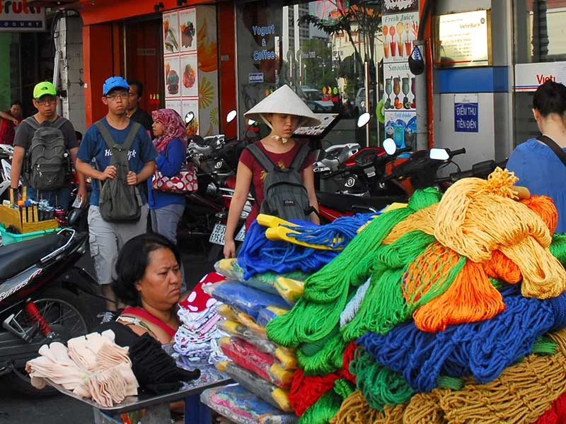 Ngoài ra, chúng tôi cũng tìm thêm các mối công việc để bà con có thể nhận về nhà làm, vừa để không buôn bán lấn chiếm vỉa hè mà vừa có thêm thu nhập. Chẳng hạn, hiện nay quận 1 đang thực hiện một loạt giải pháp nâng cao chất lượng hoạt động chợ Bến Thành để nơi đây trở thành thương hiệu du lịch mạnh, mang đặc trưng riêng của TP. Trong đó, quận đã vận động 50% tiểu thương dùng túi giấy thay túi nylon. Số lượng 50% túi giấy này chúng tôi đã chỉ đạo Phòng LĐ-TB&XH quận ký hợp đồng với ban quản lý chợ Bến Thành chuyển về chia cho bà con buôn bán hàng rong gia công để kiếm thêm thu nhập.