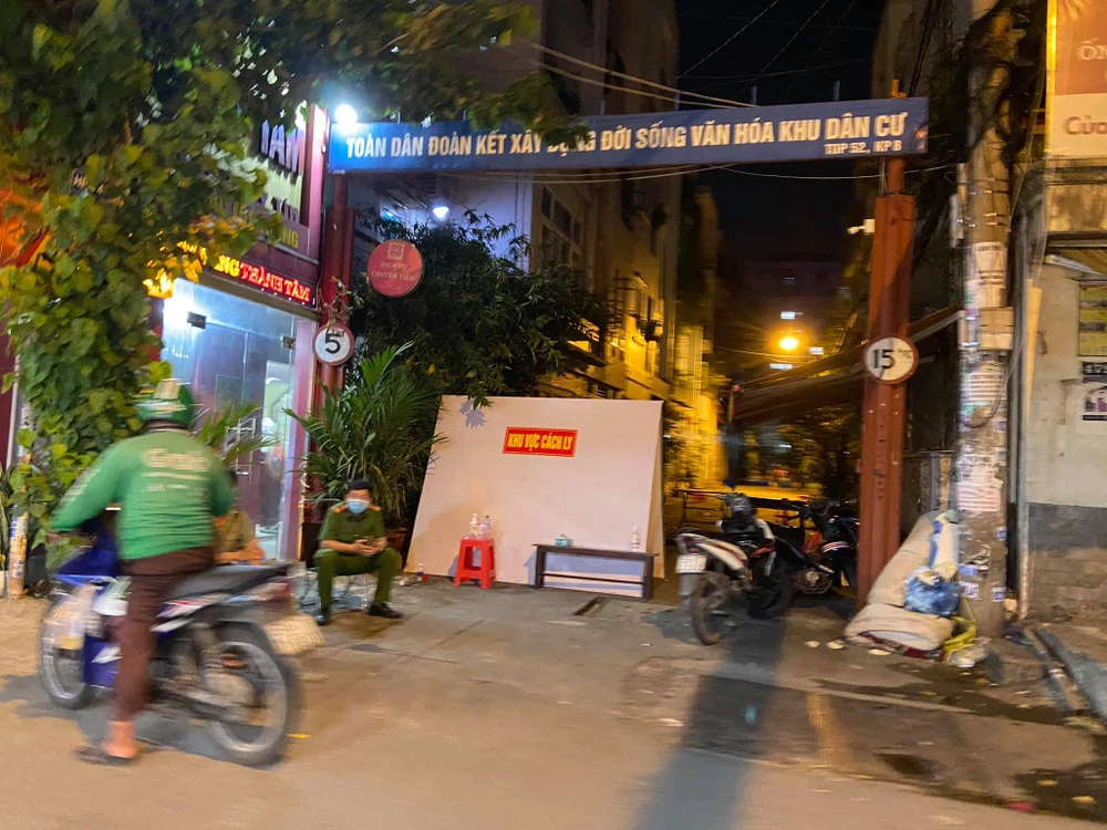 Một khu dân cư đang được phong toả để phòng chống dịch Covid-19 tại quận Gò Vấp đêm 30-5.