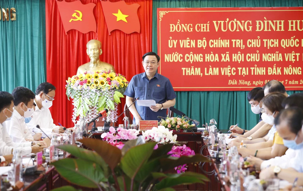 Phát biểu tại buổi làm việc, Chủ tịch Quốc hội Vương Đình Huệ đánh giá cao các nỗ lực của tỉnh thời gian qua. Tuy nhiên, ông Vương Đình Huệ đề nghị Đăk Nông cần có tinh thần vượt khó để vươn lên và “bứt phá bằng chính nội lực của mình”.