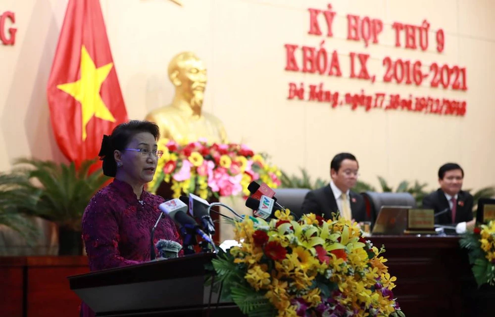 Chủ tịch Quốc hội Nguyễn Thị Kim Ngân phát biểu tại kỳ họp HĐND TP Đà Nẵng sáng 17-12. Ảnh: TẤN VIỆT