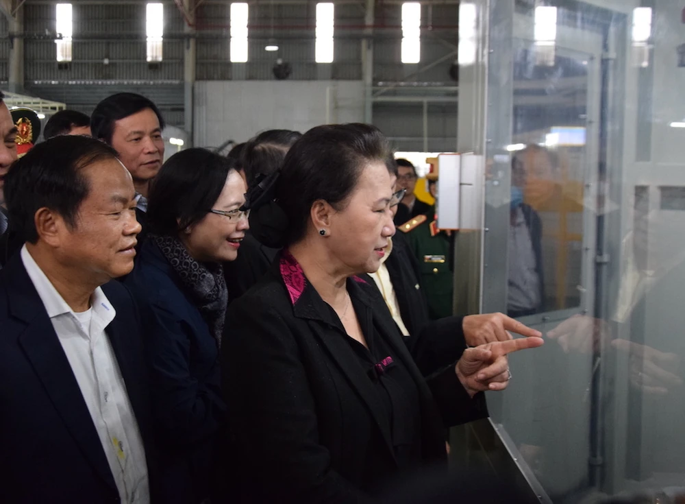 Kết thúc buổi làm việc, Chủ tịch Quốc hội Nguyễn Thị Kim Ngân và đoàn công tác có chuyến thăm khu tổ hợp sản xuất, lắp ráp ô tô Trường Hải.