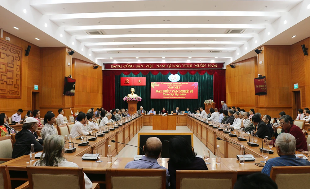 Toàn cảnh buổi họp mặt đại biểu văn nghệ sĩ Xuân Kỷ Hợi 2019 của Chủ tịch Quốc hội Nguyễn Thị Kim Ngân. Ảnh: QUỐC VIỆT