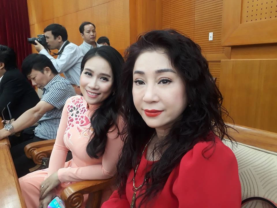 Nghệ sĩ Kim Cương đang phát biểu, kế bên là nghệ sĩ Lệ Thủy. Ảnh: HÒA BÌNH