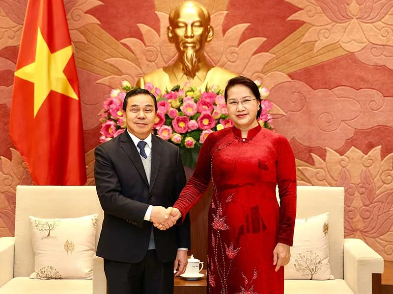 Chủ tịch Quốc hội Nguyễn Thị Kim Ngân tiếp Đại sứ Lào tại Việt Nam Sengphet Houngboungnuang đến chào xã giao. Ảnh: TTXVN
