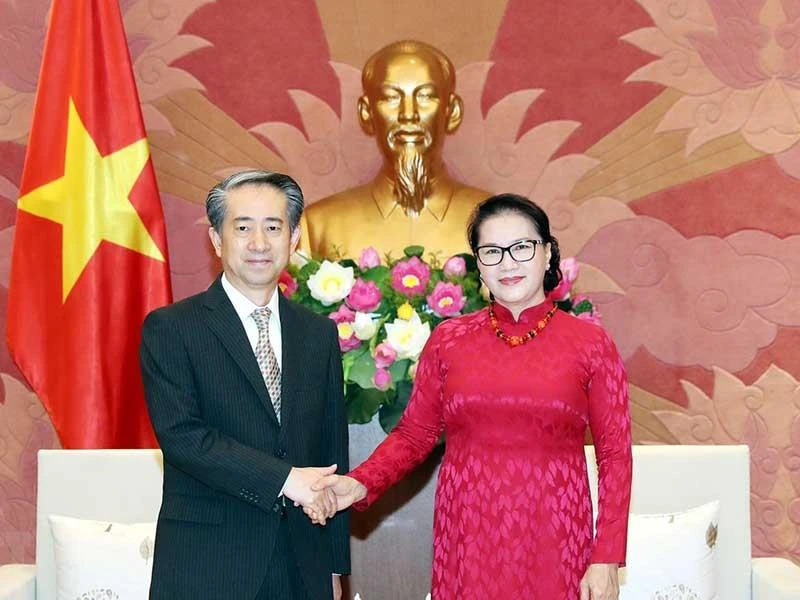Chủ tịch Quốc hội Nguyễn Thị Kim Ngân tiếp Đại sứ đặc mệnh toàn quyền nước Cộng hòa Nhân dân Trung Hoa tại Việt Nam Hùng Ba. Ảnh: TTXVN
