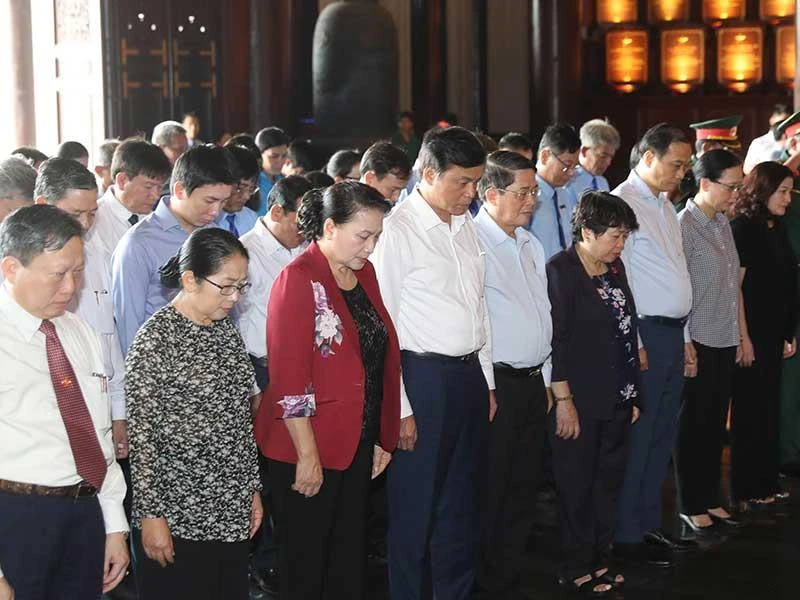 Chủ tịch Quốc hội Nguyễn Thị Kim Ngân cùng đoàn đại biểu dâng hương, dâng hoa tưởng niệm tại Khu truyền thống cách mạng Sài Gòn - Chợ Lớn - Gia Định. Ảnh: TTXVN