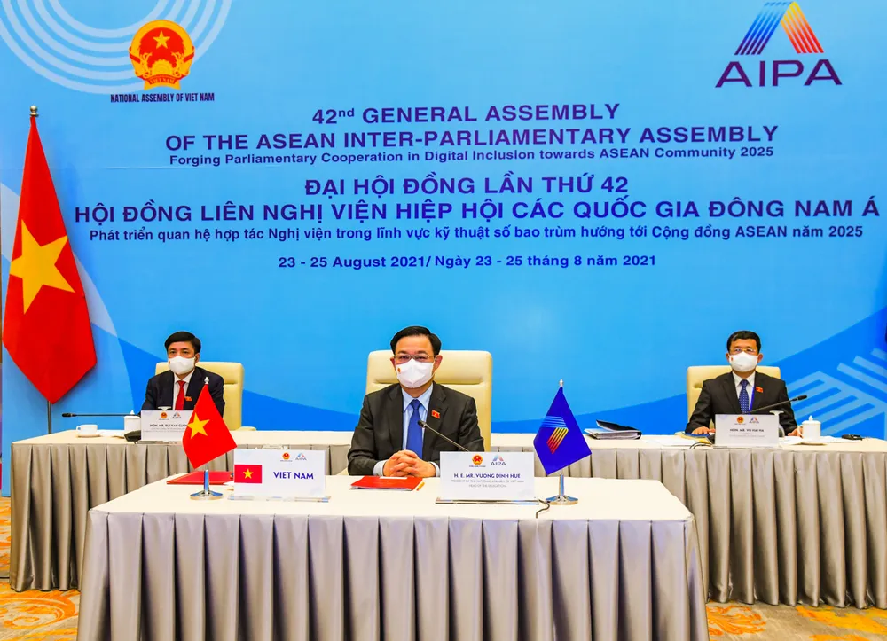 Sau đó, Trưởng đoàn Nghị viện/Quốc hội 10 nước Đông Nam Á đã lần lượt ký Thông cáo chung của Đại hội đồng AIPA-42 bằng chữ ký điện tử.