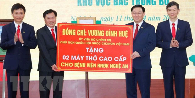 Nhân dịp này, Chủ tịch Quốc hội Vương Đình Huệ đã trao hoa và tặng hai máy thở cao cấp cho BV Hữu nghị Đa khoa Nghệ An; Bộ trưởng Bộ Y tế Nguyễn Thanh Long cũng đã trao cho BV hai máy thở cao cấp.
