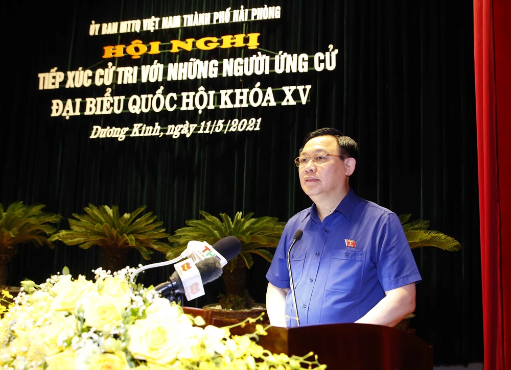 Ngày 11-5, khi cùng các các ứng viên thuộc đơn vị bầu cử số 3 TP Hải Phòng tiếp xúc vận động bầu cử tại quận Dương Kinh, Chủ tịch Quốc hội Vương Đình Huệ trình bày chương trình hành động của mình trong đó nhấn mạnh sẽ giải quyết kịp thời các khiếu nại, tố cáo của công dân.