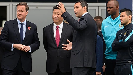 Trong chuyến thăm cấp nhà nước của Chủ tịch Tập Cận Bình hồi tháng 10 tới Anh, ông đã đến trung tâm đào tạo trẻ của Man. City. Chuyến thăm đó như một chất xúc tác bởi thương vụ mua cổ phần Man. City (hai công ty Trung Quốc mua gồm China Media Capital Holdings (CMC) và Công ty CITIC Captital đầu tư) tiến triển nhanh hơn và thành công. Hai công ty Trung Quốc hùn vốn mua 13% cổ phần Man. City đều có niêm yết cổ phiếu trên thị trường chứng khoán New York.