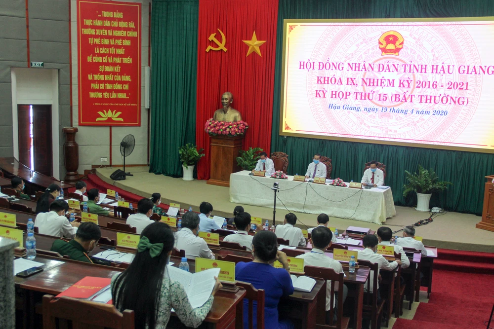 Quang cảnh kỳ họp thứ 15 (kỳ họp bất thường) HĐND tỉnh Hậu Giang khóa IX, nhiệm kỳ 2016-2021. Ảnh: BT