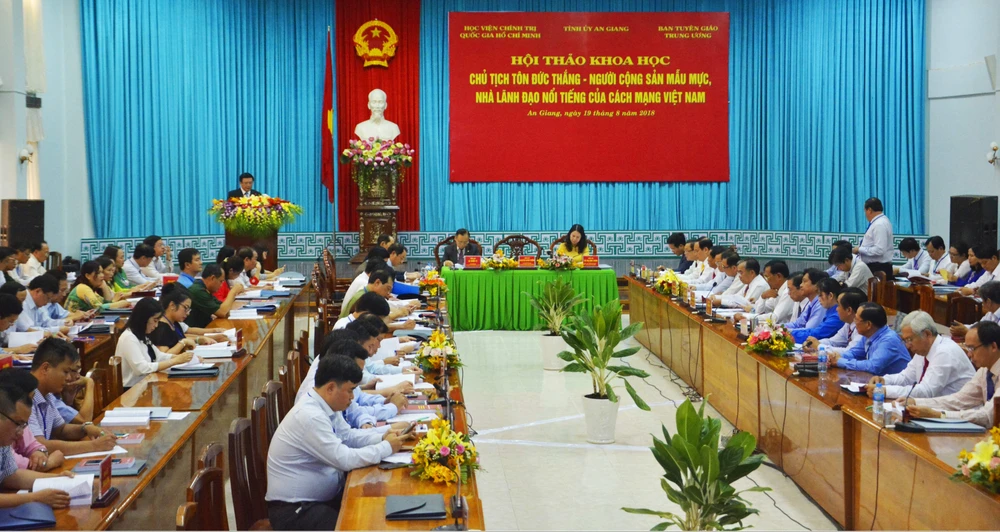 Phát biểu tại Hội thảo, ông Nguyễn Xuân Thắng, Chủ tịch Hội đồng Lý luận Trung ương, Giám đốc Học viện Chính trị Quốc gia Hồ Chí Minh cho biết: Đây là dịp chúng ta ôn lại cuộc đời cách mạng vẻ vang và những cống hiến to lớn của Chủ tịch Tôn Đức Thắng, người con ưu tú của Tổ quốc, một trong những người chiến sĩ tiên phong của Cách Mạng Việt Nam.
