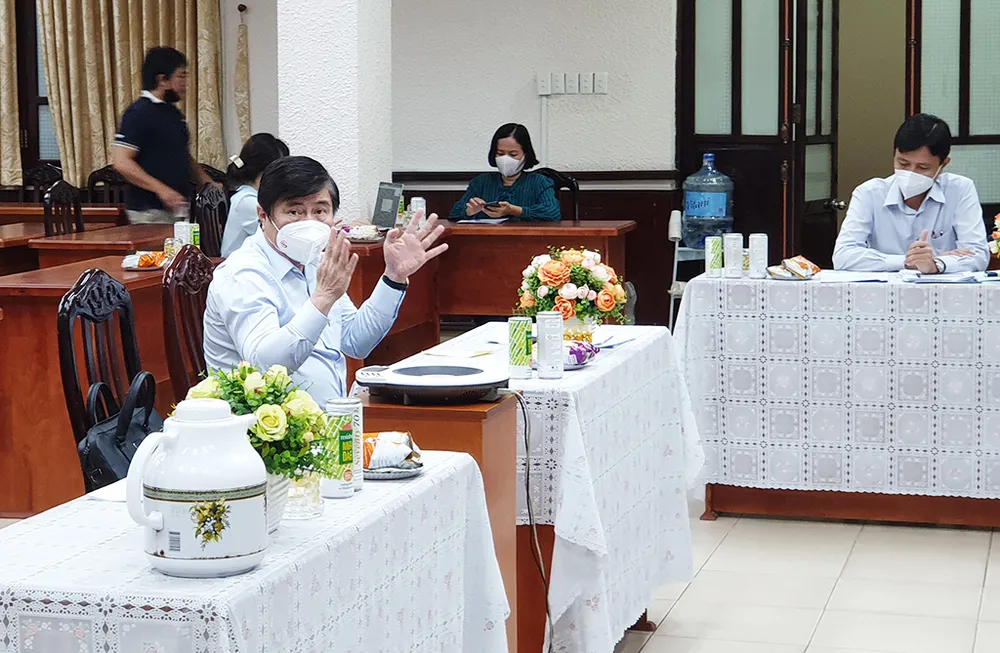 Chủ tịch UBND TP yêu cầu nối máy trực tiếp với lãnh đạo UBND các phường như phường 9, phường 2 và phường 10, quận Tân Bình, để nghe báo cáo các nội dung thực hiện giãn cách theo chỉ thị 16 cũng như đảm bảo đời sống người dân.
