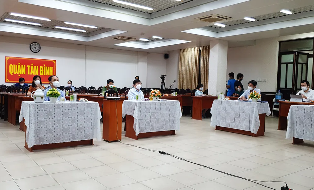 Ngày 20-7, ông Nguyễn Thành Phong, Chủ tịch UBND TP.HCM, cùng đại diện các sở, ngành đã có buổi làm việc với UBND quận Tân Bình về công tác phòng chống dịch COVID-19 và thực hiện Chỉ thị 16 trên địa bàn.