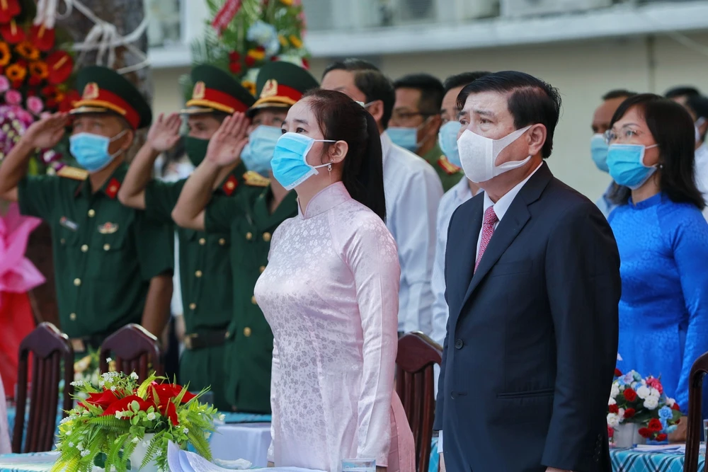 Chủ tịch UBND TP.HCM Nguyễn Thành Phong cùng các đại biểu chào cờ.
