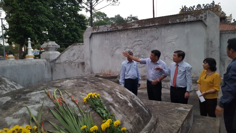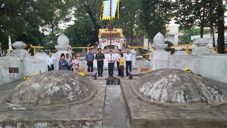 Ông Nguyễn Thành Phong cùng các đại biểu thắp hương tại mộ ông bà Lê Văn Duyệt . Ảnh: TÁ LÂM
