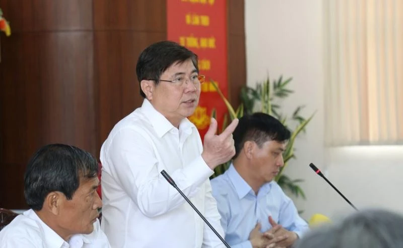 Chủ tịch UBND TP Nguyễn Thành Phong phát biểu tại buổi làm việc. Ảnh: TÁ LÂM
