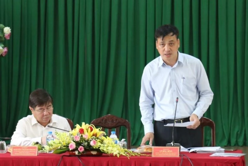 Chủ tịch UBND quận 7 Lê Hòa Bình báo cáo tại buổi làm việc. Ảnh: TÁ LÂM