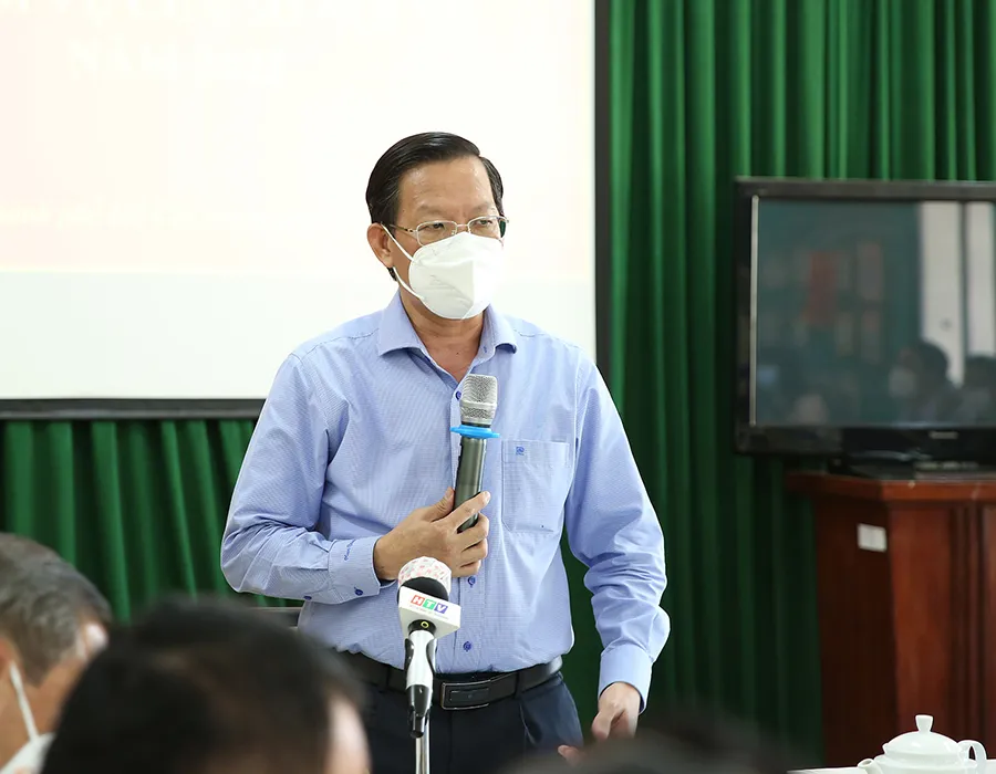 Chủ tịch TP.HCM Phan Văn Mãi phát biểu tại hội nghị. Ảnh: TÁ LÂM