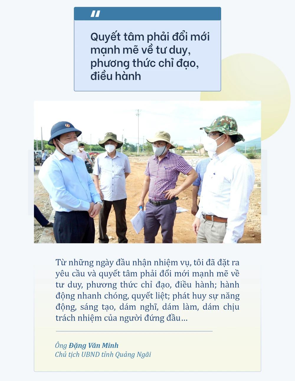 Ngay từ những ngày đầu nhận nhiệm vụ mới, tôi đã đặt ra yêu cầu và quyết tâm phải đổi mới mạnh mẽ về tư duy, phương thức chỉ đạo, điều hành; hành động nhanh chóng, quyết liệt; phát huy sự năng động, sáng tạo, dám nghĩ, dám làm, dám chịu trách nhiệm của người đứng đầu…