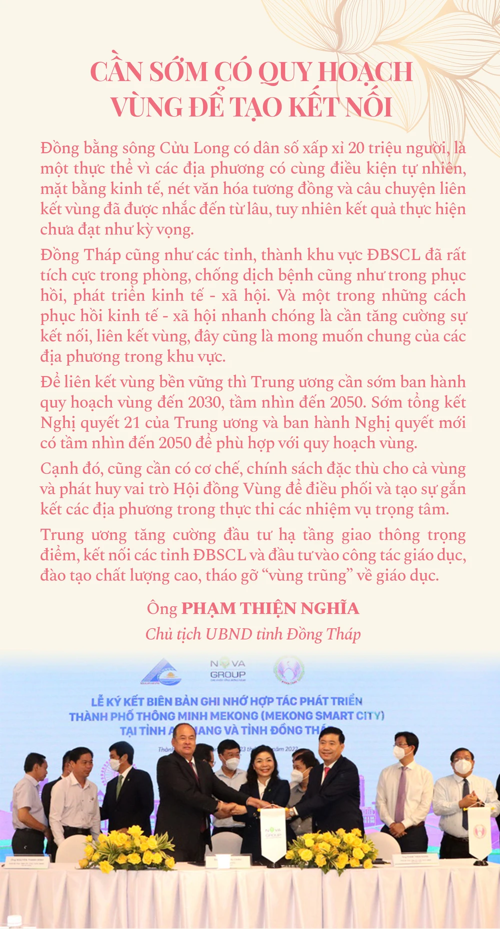 + Đồng Tháp rất quan tâm đến vấn đề tạo việc làm để người dân an cư, ổn định cuộc sống ngay tại địa phương. Trong những năm qua, tỉnh đã tập trung thực hiện đề án tái cơ cấu ngành nông nghiệp, phát triển mạng lưới dạy nghề, phát triển các phong trào khởi nghiệp, phát triển làng nghề, đặc biệt là phát triển các khu, cụm công nghiệp, thu hút đầu tư để giải quyết lao động... Trong đợt dịch bệnh vừa qua, Đồng Tháp đón nhận hơn 74.000 công dân trở về địa phương.