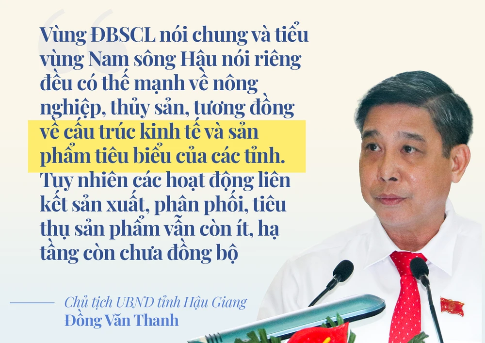 + Phải nhìn nhận rằng vùng ĐBSCL nói chung và tiểu vùng Nam sông Hậu nói riêng có thế mạnh về nông nghiệp, thủy sản, tương đồng về cấu trúc kinh tế và sản phẩm tiêu biểu của các tỉnh. Tuy nhiên, các hoạt động liên kết sản xuất, phân phối, tiêu thụ sản phẩm vẫn còn ít, hạ tầng còn chưa đồng bộ.