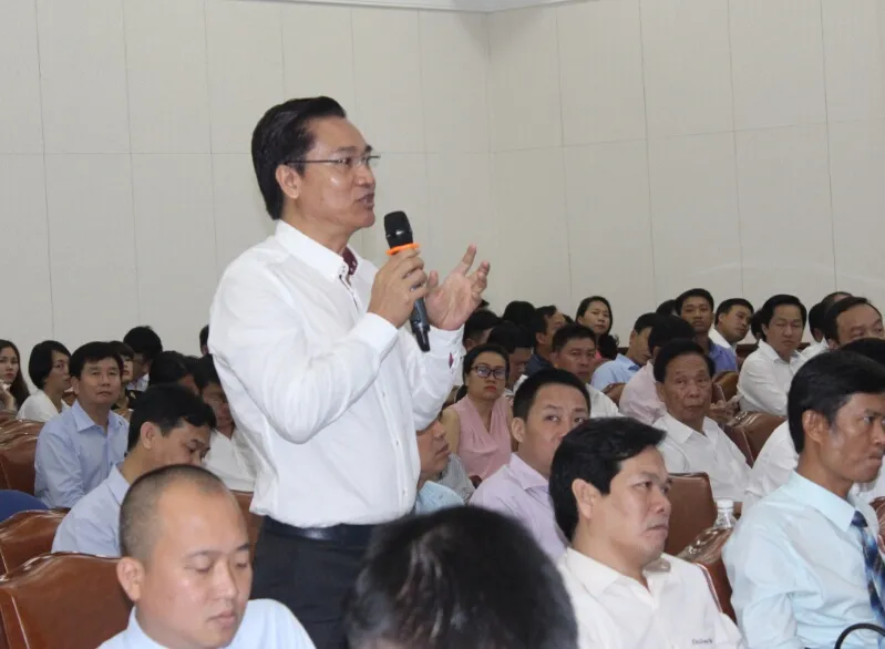 Chủ tịch Nguyễn Thành Phong phát biểu tại buổi gặp. Ảnh: TÁ LÂM