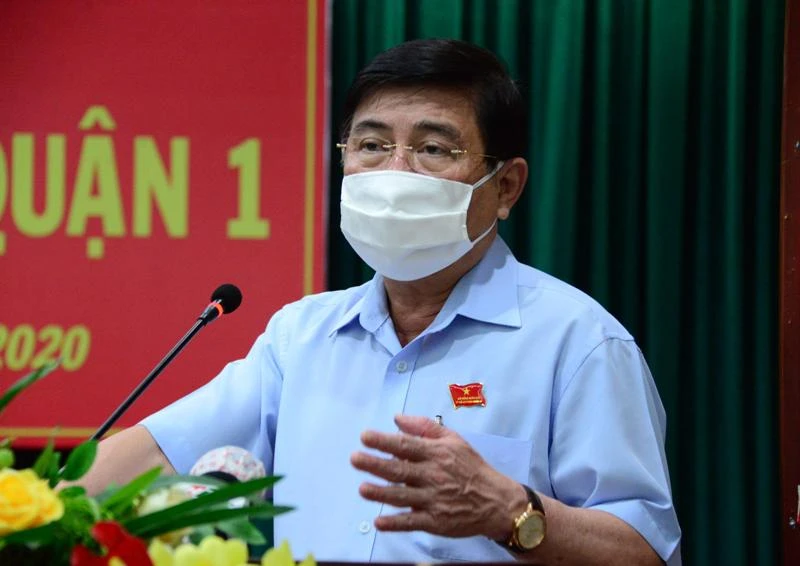 Phát biểu tại buổi tiếp xúc, Chủ tịch UBND TP.HCM Nguyễn Thành Phong đã thông tin đến cử tri quận 1 về tình hình kinh tế - xã hội 6 tháng đầu năm, trong bối cảnh nền kinh tế cả nước và TP gặp rất nhiều khó khăn do tác động của dịch COVID-19.
