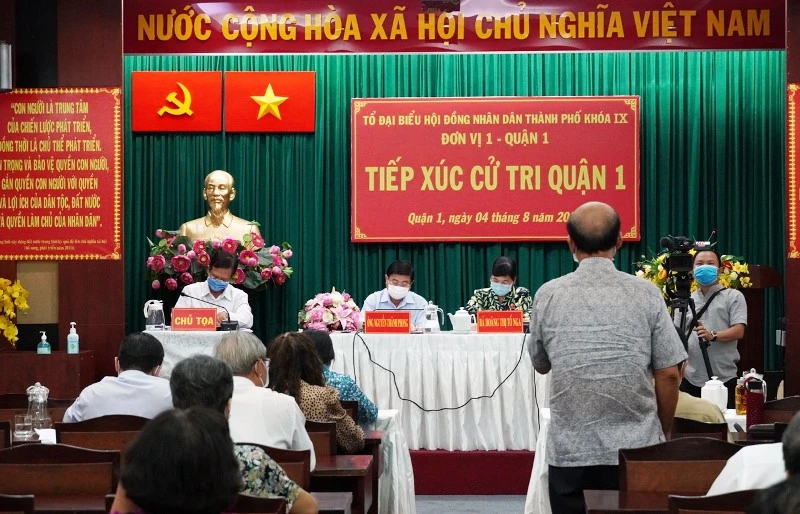 Tối 4-8, Chủ tịch UBND TP.HCM Nguyễn Thành Phong cùng các đại biểu HĐND TP.HCM đã có buổi tiếp xúc cử tri quận 1 sau kỳ họp thứ 20 HĐND TP khóa IX.