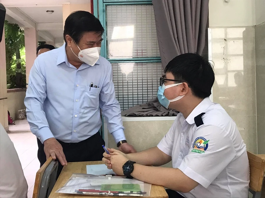 Đối với cán bộ coi thi, ông Phong căn dặn nhắc nhở, hướng dẫn phụ huynh khi đến con cũng thực hiện nghiêm việc phòng chống dịch. “Khi con đi thi, phụ huynh lo lắng là chuyện đương nhiên. Nhưng trong bối cảnh dịch bệnh trên địa bàn TP phức tạp thì phụ huynh khi đến đón con cố gắng thực hiện giãn cách, tránh tụ tập một chỗ” – ông Phong nói.