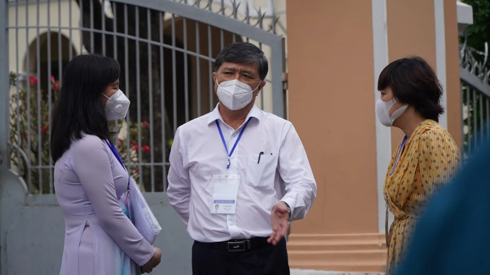 Ông Nguyễn Văn Hiếu, Phó Giám đốc phụ trách Sở GD&ĐT TP.HCM trao đổi với các điểm thi. Ảnh: NT
